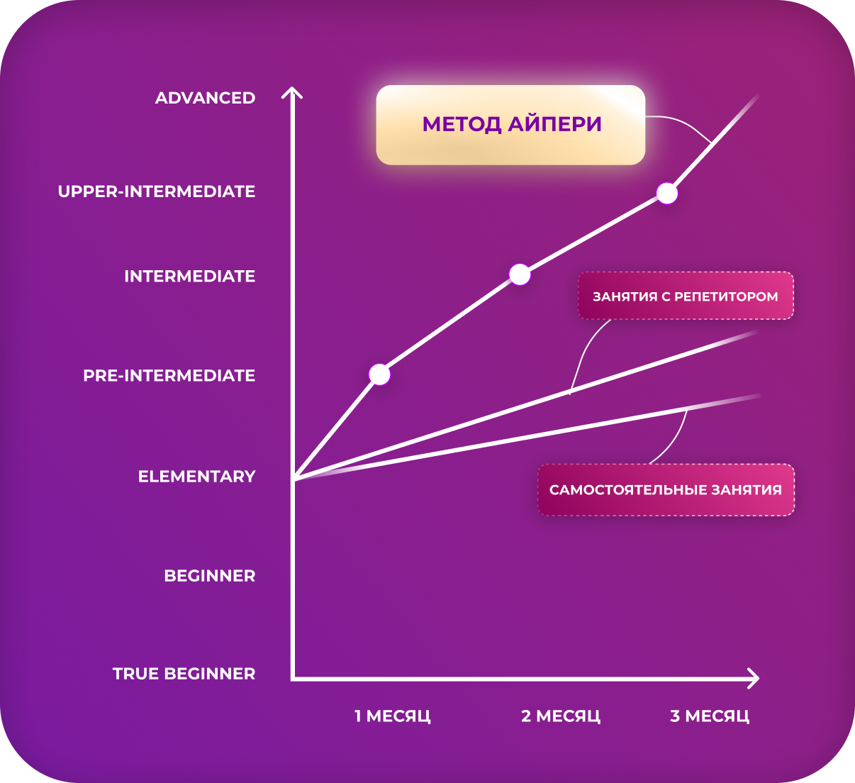 потому что вы получите рабочую технику изучения английскоговсего за 3 месяца и до нужного вам уровня
